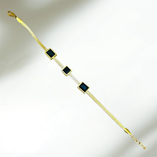 Black Chunky Bracelet-18K Gold Plated.